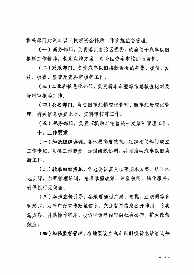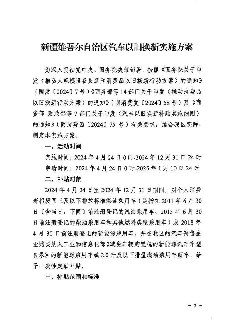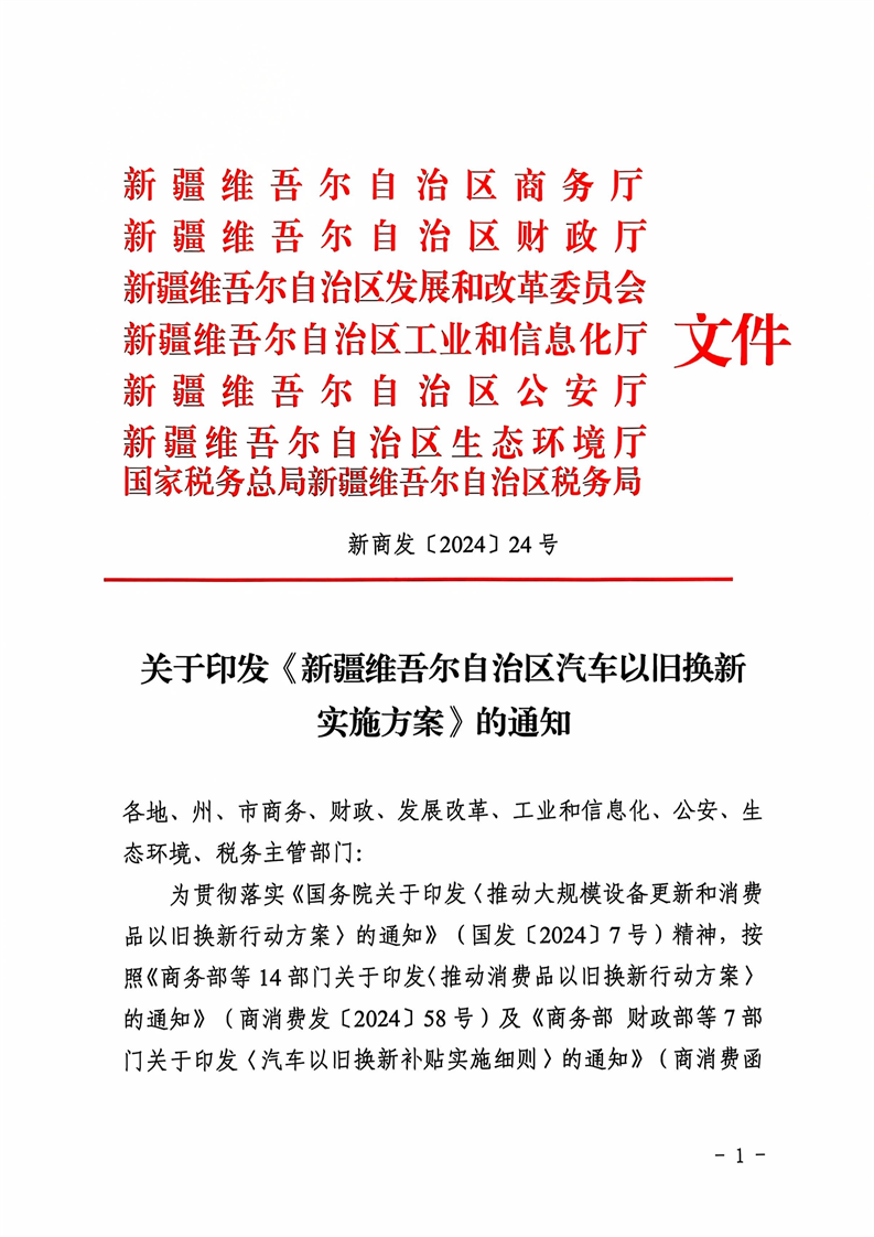 关于印发《新疆维吾尔自治区汽车以旧换新实施方案》的通知 -h365官方网站