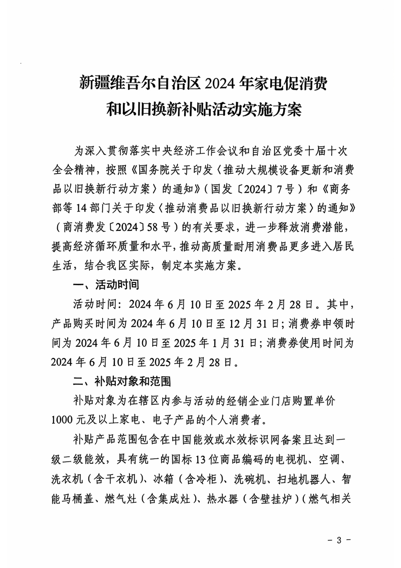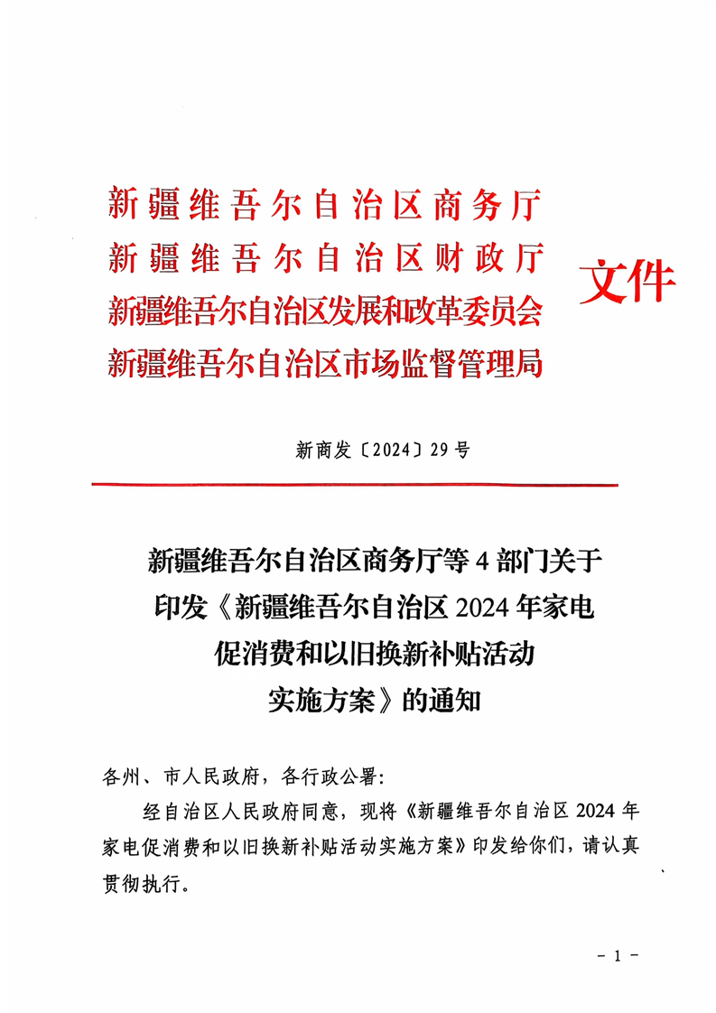 新疆维吾尔自治区商务厅等4部门关于印发《新疆维吾尔自治区2024年家电促消费和以旧换新补贴活动实施方案》的通知 -h365官方网站
