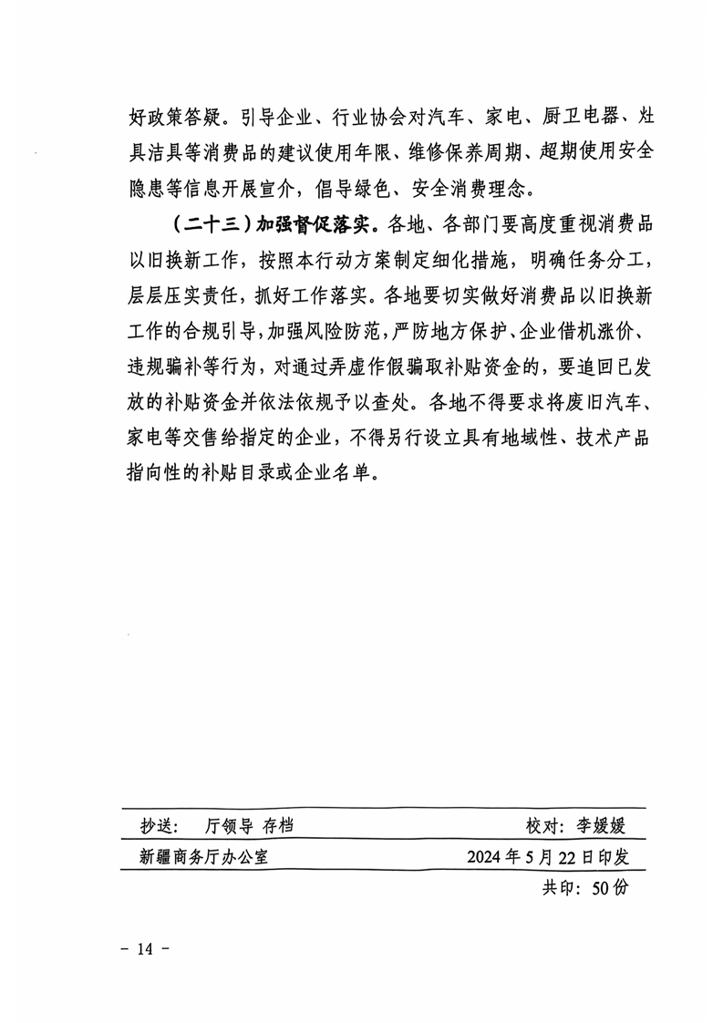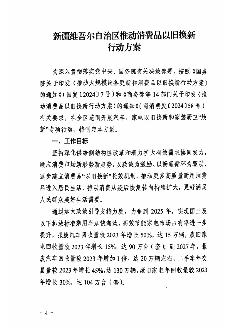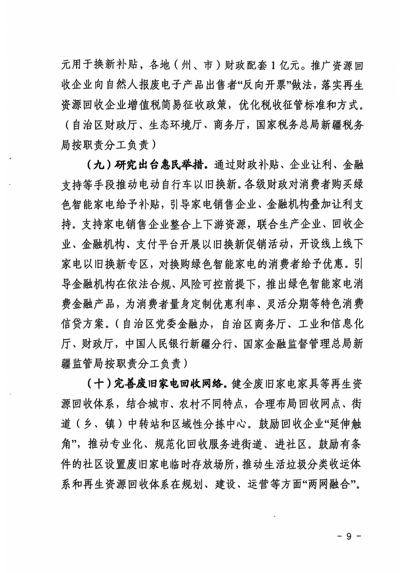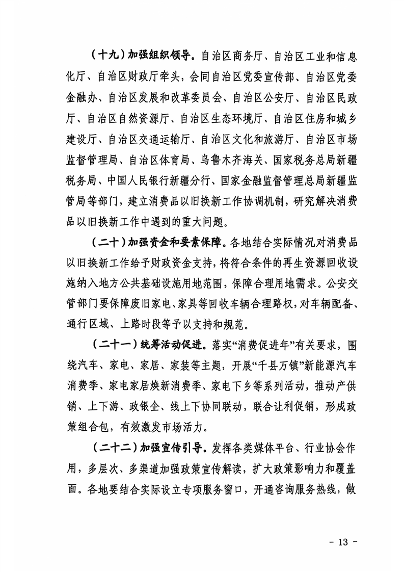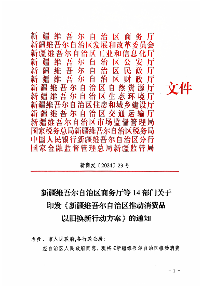 新疆维吾尔自治区商务厅等14部门关于印发《新疆维吾尔自治区推动消费品以旧换新行动方案》的通知 -h365官方网站