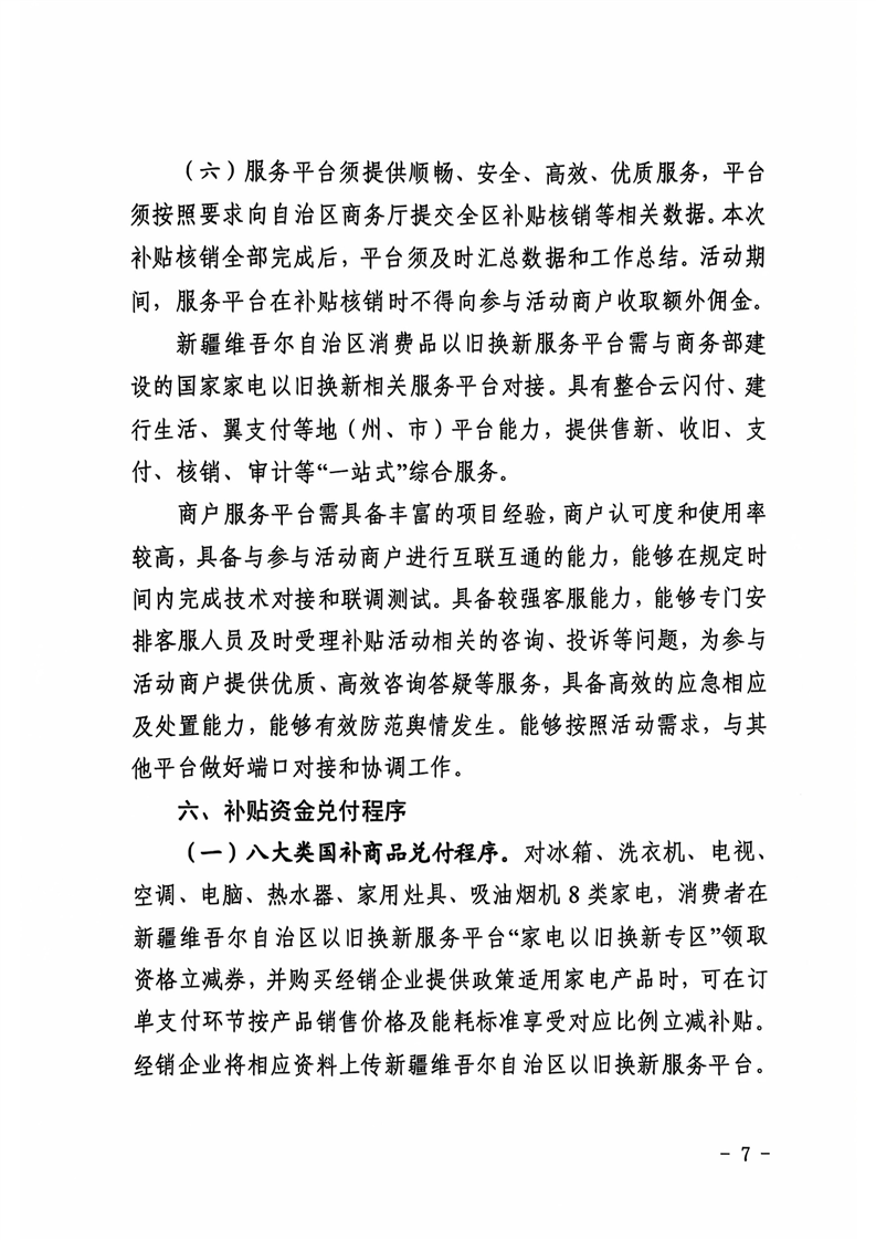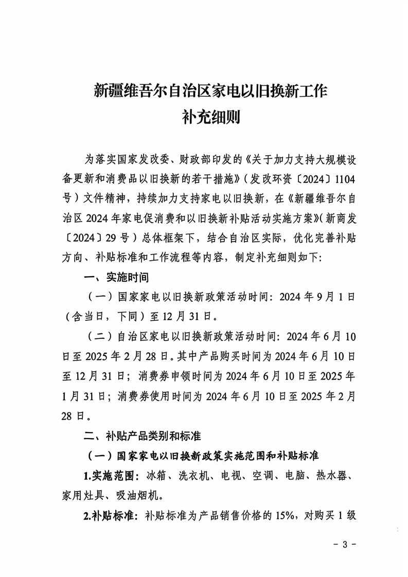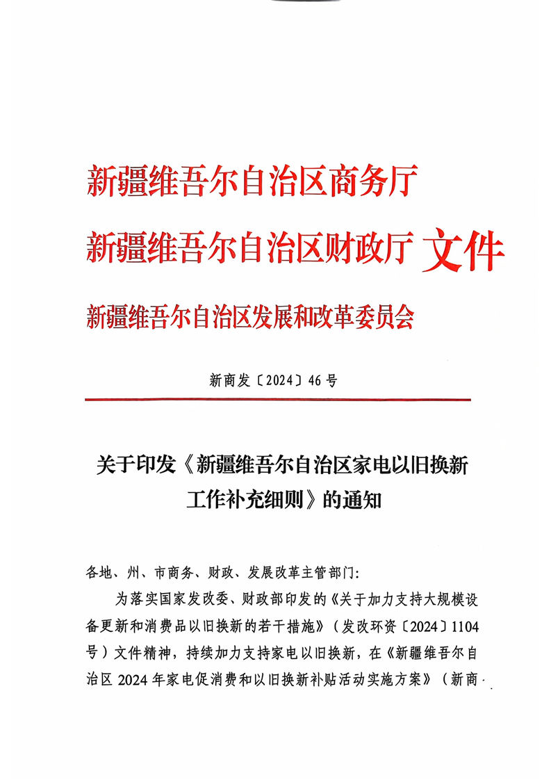 关于印发《新疆维吾尔自治区家电以旧换新工作补充细则》的通知 -h365官方网站