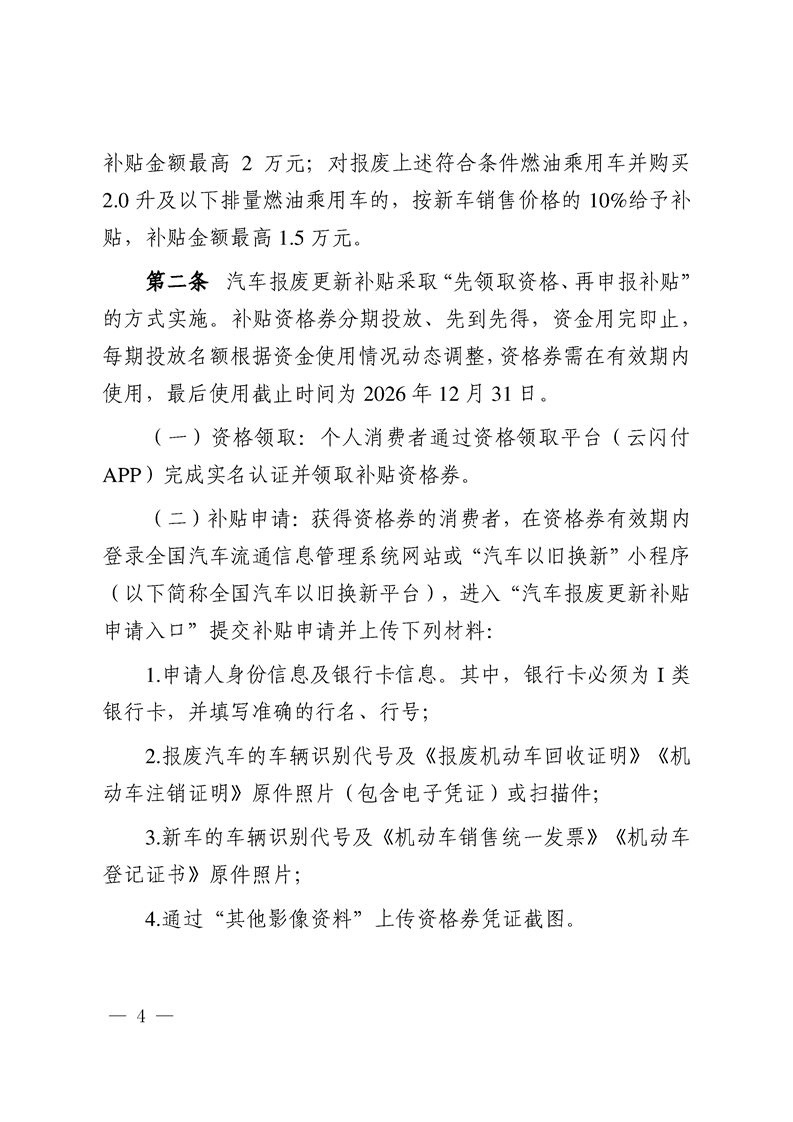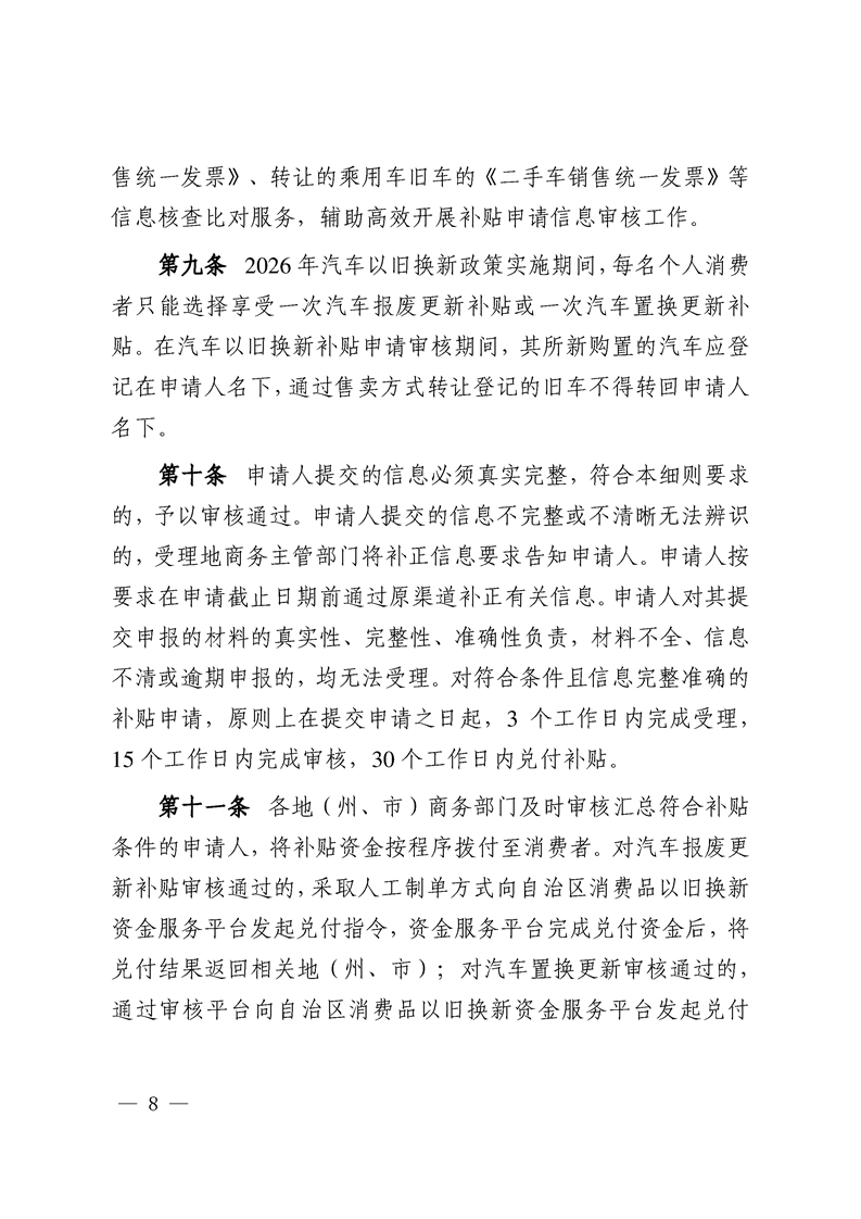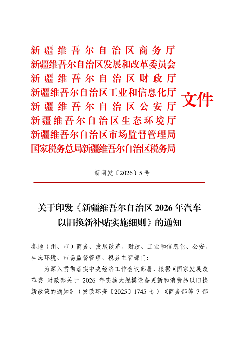 关于印发《新疆维吾尔自治区2026年汽车以旧换新补贴实施细则》的通知 -h365官方网站